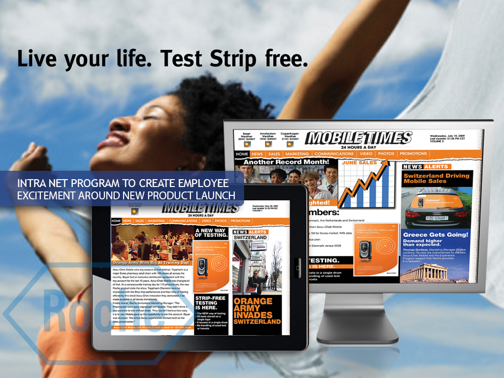 Created an intranet program to create employee excitement around the new product launch of the Accu-Chek Mobile blood glucose monitoring system. Project included branding, print advertising to trades, digital media